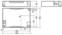 | 59,4-100W / 1100mA-2100mA (1100mA voreingestellt) | 100W ab 1850mA | | Strom in 1mA Schritten einstellbar (über I-Select Plug 2 oder ready2mains) | | Einbauversion | | Schutzfunktionen (Übertemperatur | Kurzschluss | Überlast | Leerlauf | Eingangsspannung) | | Gemäß Notlichtnorm EN 50172 | Lebensdauer 100.000h / 5 Jahre Garantie | | Abm.: 140 x 100 x 30mm |