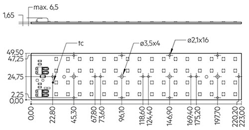 | Quadratisches LED Konstantstrommodul speziell für den Außenbereich | 350mA / 15,2W / 2900lm | 700mA / 31,8W / 5580lm | Lichtfarbe 3000°K | | CRI: 80 | Abmessungen: 49,5 x 223 x 6,5mm |