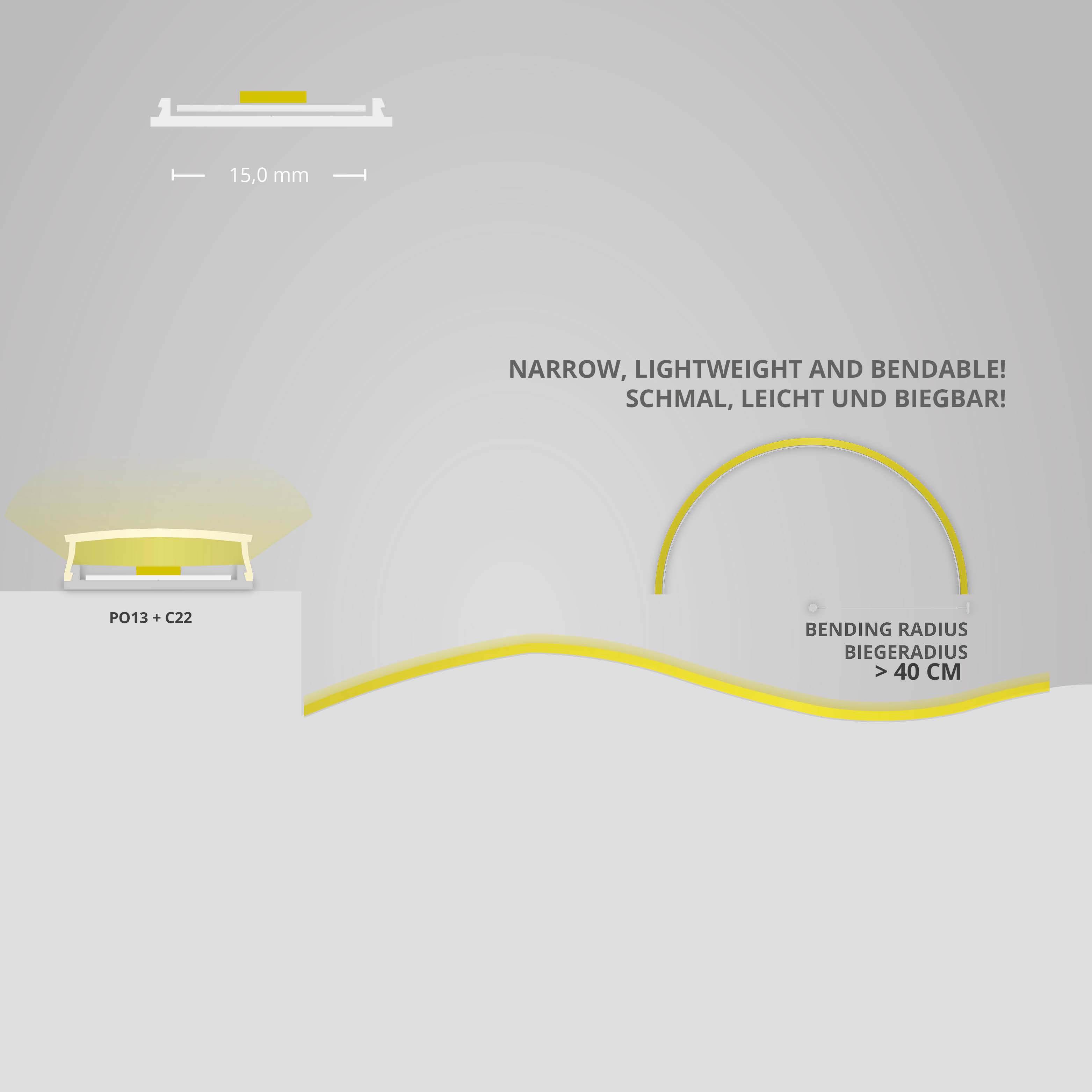 Produktinformationen "GALAXY PO13 LED AUFBAU-Profil 200 cm, biegbar, LED Stripes max. 15 mm"