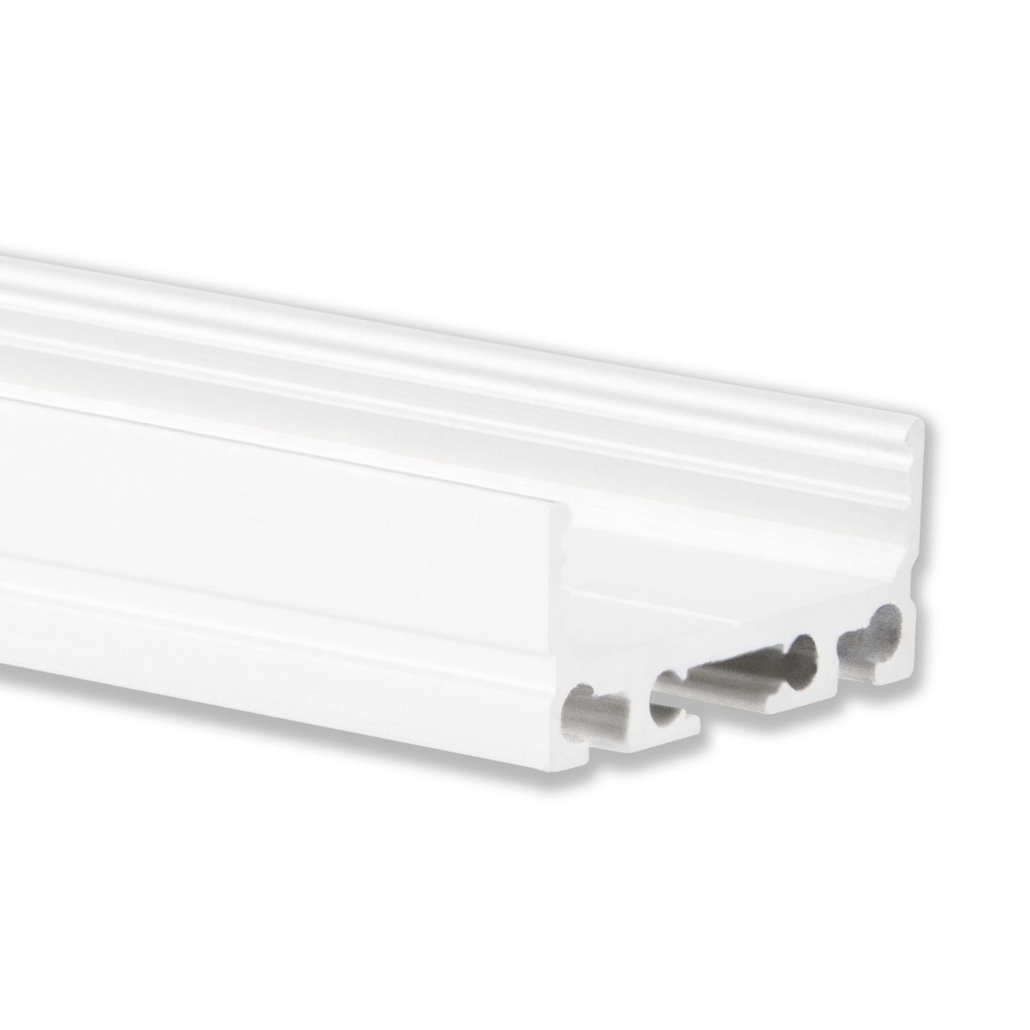 Zolltarifnummer: 76042990 Herkunftsland: CN| Aluminium weiß pilverbeschichtet || L: 2000mm | B 26,79mm | H 11,69mm |Einsatz als eigenständige LINEARE LED HÄNGELEUCHTE mit Seilabhängung oder als LINEARE LED LEUCHTE mit zusätzlichem Kabelkanal möglich. Siehe Artikelbeschreibung!ANWENDUNGSBEREICHE:Wand-, Decken- oder BodenmontageWohn- und BüromöbelMöbel für GeschäftsausstattungWohnaccessoiresSpiegelSchranktürenVitrinenRegaleTreppenstufen und –GeländerBalustradenFassaden, Balkone und TerrassenWohnräumeBüroräumeHotellerie und GastronomieEinzelhandel (Shop- und Schaufenster)Geschäftsflächen und ShowroomsFriseur-/Beauty-/Body-Art-StudiosHallen, Foyers und FlureWellness- und Indoor-FreizeitanlagenNasszelleMontage/Einbau auf/in Holzleisten und -platten, Gipsplatten, Fliesen, Stein-, Granit-, Marmor- und Metalloberflächen DetailsHomogenes Licht mit modularen LED Lichtlösungen von GALAXY® profilesHomogenous light with modular LED light solutions by GALAXY® profilesIntelligentes Produktdesign und einzigartige Produktkompatibilität sind die Grundlage für zukunftsweisende LED Beleuchtungskonzepte. LED Profilsysteme von GALAXY® profiles sind modulare LED Lichtlösungen. Die einzelnen Systemkomponenten werden mit wenig Aufwand, einfach und schnell per Klick-System zusammengesetzt und substanzschonend montiert.Das PL1 LED AUFBAU-Profil hat ein besonders schmales und flaches Design, ist für LED Flexbänder mit einer maximalen Breite von 12 mm konzipiert und wird universell im Innenbereich (in Verbindung mit dem PL10 Aufbauprofil und Kabel-Universalkanal auch als eigenständige LED Hängeleuchte mit Seilabhängung oder als LED Leuchte fixiert mit Montageklammern/-federn) eingesetzt. Dieses Alu-Profil kann auch anwendungsspezifisch zum Einbau verwendet werden.Die LED Profilabdeckungen Opal/satiniert (Lichtdurchlässigkeit 65 %) oder Klar (Lichtdurchlässigkeit 85 %) bestehen aus bruchsicherem und schwer brennbarem Polycarbonat (*Klassifizierung Brennbarkeit UL94 V-2) und schaffen homogene LED Lichtverhältnisse mit hoher Verwertung der Lichtleistung.Aufgrund der kleinen Abmessungen und des geringen Gewichtes sind diese LED Profile unter anderem als ideale LED Lichtquelle in Wohn- und Büromöbeln, Wohnaccessoires, Vitrinen, Regalen sowie an Treppenstufen und selbstverständlich an Wänden und Decken geeignet. *Klassifizierung Brennbarkeit UL94 V-2: Verlöschen einer vertikal eingespannten Probe innerhalb von 30 SekundenLED Profile von GALAXY® profiles sindwärmeableitend,verlängern die Lebensdauer der LED Stripes undschützen LED Streifen vor Schmutz und mechanischen Einwirkungen.Einfache und schnelle MontageDie selbstklebenden LED Stripes werden mittig entlang der Nut in das LED Profil eingelegt, festgeklebt , verkabelt (Kunststoff-Endkappen mit Kabeldurchführung verfügbar) und mit der LED Licht- und Steuerungstechnik (LED Trafo, LED Sequenzer etc.) verbunden. Das LED Profil kann direkt in die am Trägerobjekt oder an der Bausubstanz vorinstallierten Montageklammern eingeklickt werden.LED Lichtleisten können bei glatten Oberflächen auch mit einem beidseitigen Klebeband angebracht werden. Abschließend werden die dazugehörigen LED Profilabdeckungen aus Polycarbonat bündig eingeklickt.Empfehlung:Für eine ausgezeichnete Haftung der selbstklebenden LED Streifen empfehlen wir die gründliche Reinigung und Entfettung der Profil-Innenseiten mit einem Aceton-Reiniger.Einsatz in Nasszellen und OutdoorDer Einsatz in Nasszellen oder im Außenbereich ist ausschließlich nur in abgedichteter Form möglich. Besonderen Schutz vor Feuchtigkeit und Wasser bietet Silikon, das zum Abdichten auf die Verbindungsstellen aufgetragen wird. Absolute Dichtheit gegen Wasser erreicht man bei den LED Profilsystemen mit dem Vergießen mit Wepuran-Gießharz auf Polyurethanharzbasis (PUR).Wichtig:Bei der Montage von LED Profilsystemen in Nasszellen und Outdoor ist zwingend auf die ausschließliche Verwendung von LED Flexbändern mit entsprechender Schutzart zu achten! Lineare LED Outdoor Leuchtensysteme von GALAXY® profiles erfüllen diese Anforderungen standardmäßig. Wir beraten Sie gerne!Konfektionierung und serienmäßige Sonderanfertigung (OEM)Ab entsprechender Mindest-Abnahmemenge werden die LED Profile sowie Kunststoff-Abdeckungen aus unserem Standardsortiment nach Maß konfektioniert oder gemäß kundenspezifischen Längen-Vorgaben bis max. 6 m Gesamtlänge pro LED Profilsystem produziert.Auf Wunsch können LED Aluminium-Profile von GALAXY® profiles in sämtlichen RAL-Farben hergestellt werden (Pulverbeschichtung).Wir erwarten gern Ihre Anfragen!Perfect Light Lines by GALAXY® profiles}