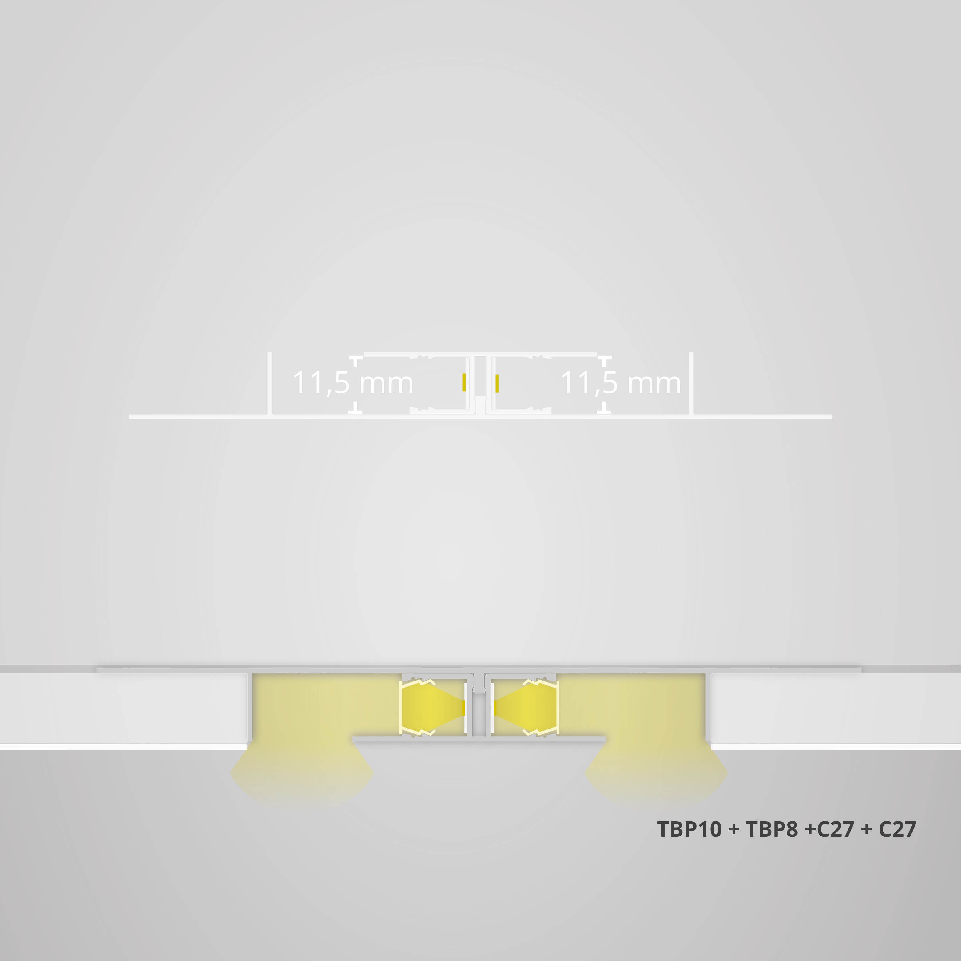 Zolltarifnummer: 76042990 Herkunftsland: CN|Länge [mm]2000,0 | | Höhe [mm]13,5 | | Breite [mm]152,5 | | Gewicht [g/Stk]1430 | | Max. Breite Stripe20 | | erforderliche Kühlmasse g/m0 | Das TBP10 LED Trockenbau-Profilsystem bietet eine nachhaltige Lichtintegration in moderne Architektur. Es besteht aus einer Grundplatte und einem Leuchtenmodul. Das Leuchtenmodul ist für LED-Stripes bis 11 mm Breite konzipiert und strahlt beidseitig ab. Die Grundplatte wird mit den Gipsplatten verbunden, und das Modul wird einfach eingesteckt. Die Profilabdeckung aus bruchsicherem Polycarbonat sorgt für eine indirekte Beleuchtung mit 65 % Lichtdurchlässigkeit und ist schwer brennbar. Ideal für nachhaltige Beleuchtungslösungen im Trockenbau. Für optimale Haftung der LED Streifen wird eine gründliche Reinigung der Profil-Innenseiten empfohlen.}