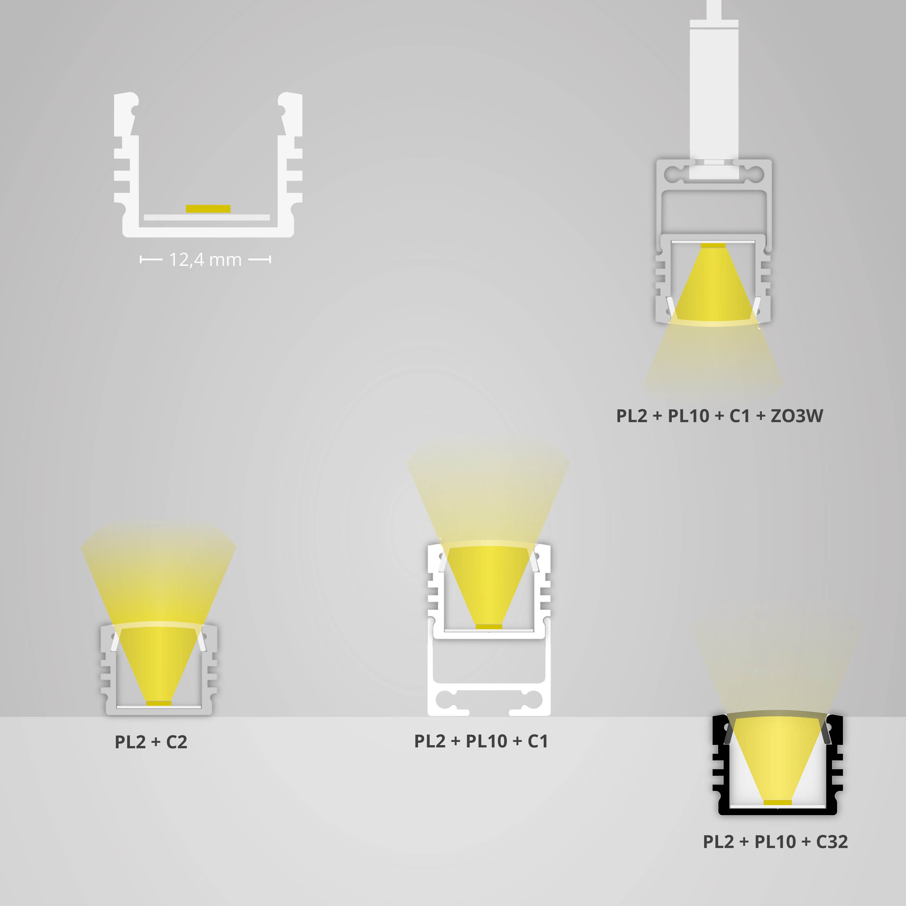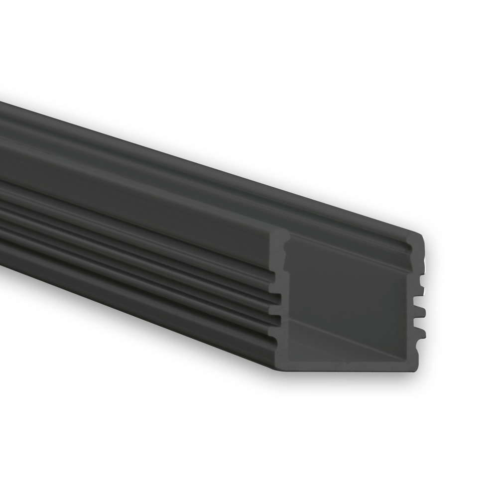 Zolltarifnummer: 76042990 Herkunftsland: CN| Aluminium schwarz pulverbeschichtet || L: 2000mm | B 16,8mm | H 13,01mm |Das PL2 LED AUFBAU-Profil ist ein besonders schmales Alu-Profil, das für LED Flexbänder mit einer maximalen Breite von 12 mm konzipiert wurde und universell im Innenbereich eingesetzt werden kann. Es eignet sich für Anwendungen wie Hängeleuchten mit Seilabhängung oder als fest installierte LED-Leuchte mit Montageklammern/-federn. Aufgrund seiner größeren Innenhöhe und des größeren Kühlkörpers kann es mit leistungsstärkeren LED Flexbändern bestückt werden, während eine homogene Lichtlinie ohne sichtbare Lichtpunkte erhalten bleibt. Das Profil ist ideal für die Verwendung in Wohn- und Büromöbeln, Vitrinen, Regalen, Treppenstufen sowie an Wänden und Decken. Es ist besonders für Bereiche geeignet, in denen eine diskrete und effiziente Beleuchtung benötigt wird. Für optimale Haftung der LED-Stripes wird eine gründliche Reinigung der Profil-Innenseiten empfohlen.}