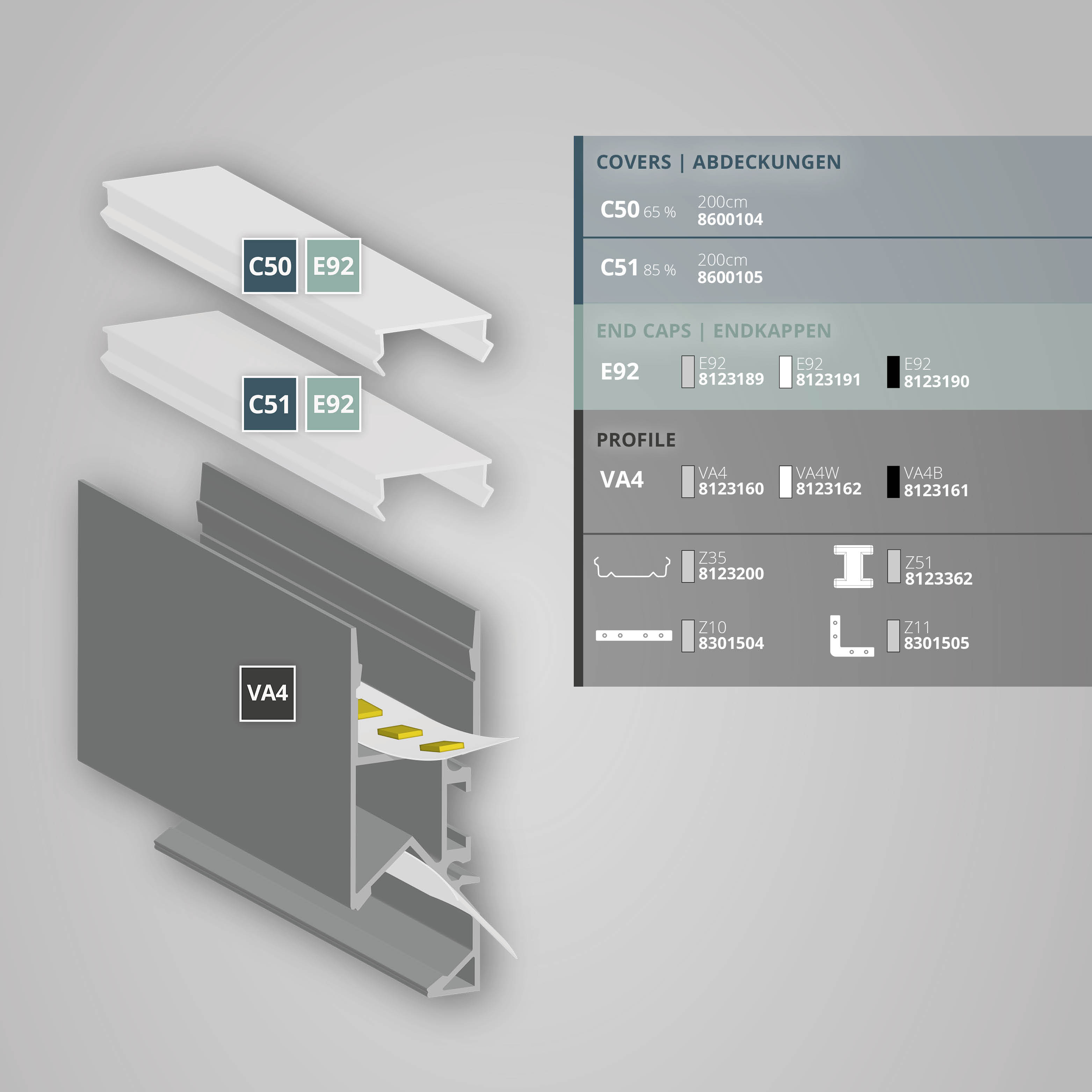Weiterführende Links zu "GALAXY VA4 LED Aufbauprofil 200cm weiß RAL 9003, LED Stripes max. 16 mm"