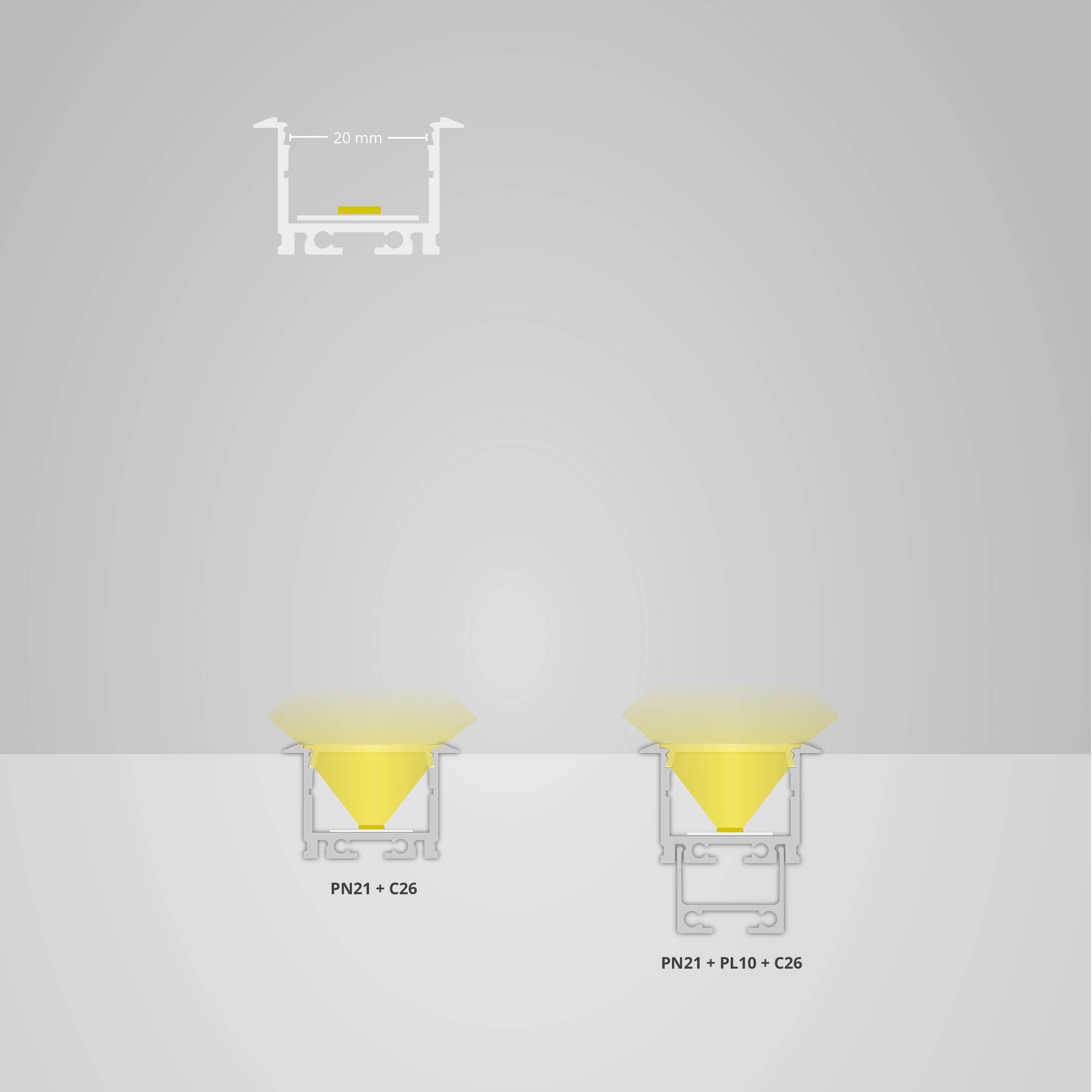Weiterführende Links zu "GALAXY PN21 LED Einbauprofil 200cm, hoch/Flügel, LED Stripes max. 20mm"