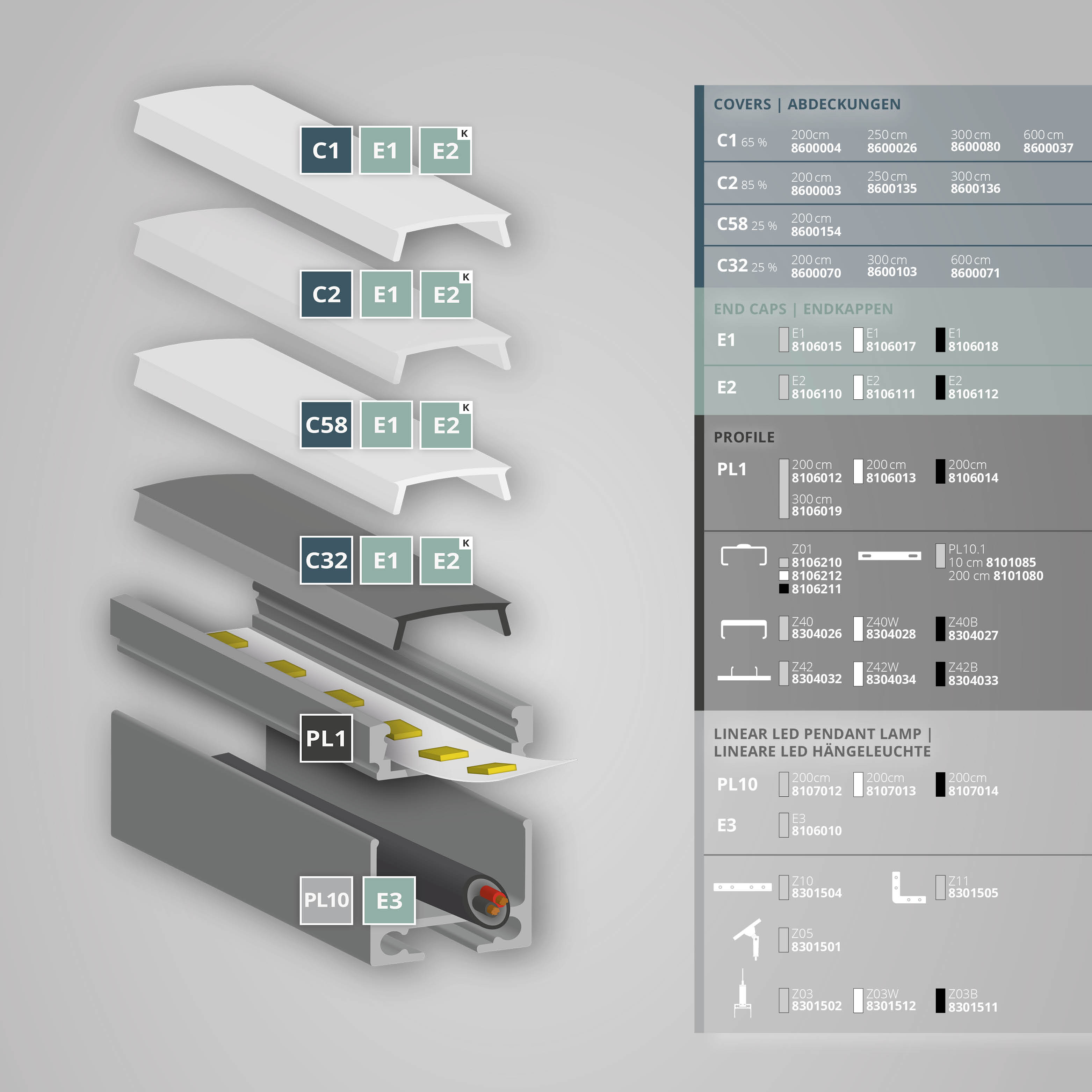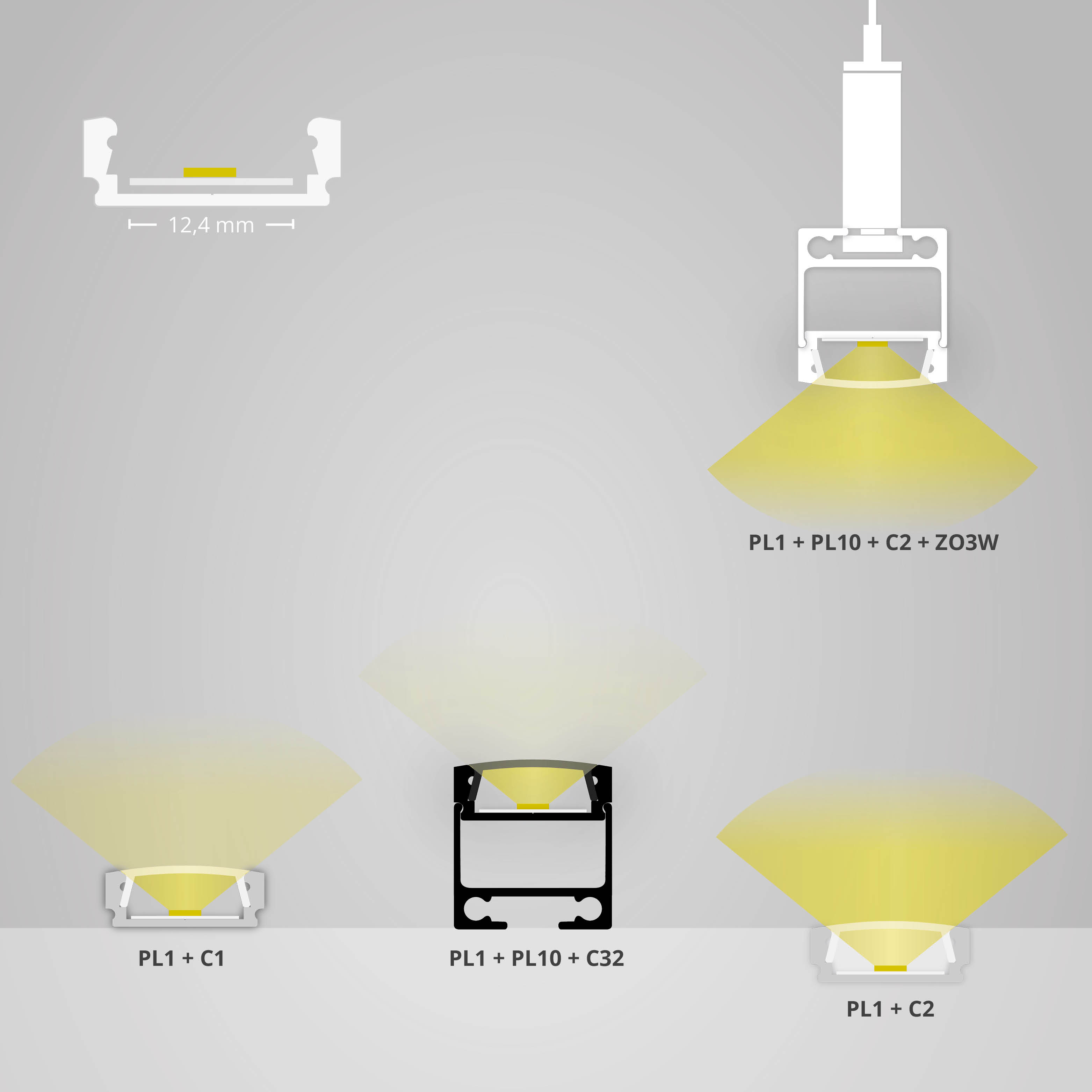 Weiterführende Links zu "GALAXY PL1 LED AUFBAU-Profil 300 cm, flach, LED Stripes max. 12 mm"