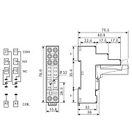 Relaisfassung mit Schraubanschlüssen, für Relaisserie 40.51/.52/.61, Farbe: blau, mit integrierter Schnappbefestigung für Modulserie 99.02, 86.10/20, 'sichere Trennung' nach VDE 0106