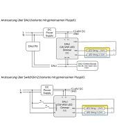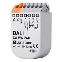 Technische DatenUmgebungstemperatur: -20°C bis +60°CSchutzklasse: IP20Anschlussdrähte Querschnitt: max. 1,5mm2Montage: DoseneinbauErwartete Lebensdauer: >100000hFunktionGerätetyp: DALI LED TreiberZustand nach Netzrückkehr: über DALI konfigurierbar: 0-100% oder letzter WertDeviceType: DT6Über DALI Cockpit konfigurierbar: JaElektrische DatenVersorgung: 12 – 28VDCTyp. Stromaufnahme: 2mA (DALI)Steuereingang: DALI Anzahl DALI Adressen: Betriebsart DT8, Dim2Warm: 1 Betriebsart Balance&Dim: 2Max. Anschlussstrom linmax: 4AGehäuse und AbmessungenLänge: 59mmBreite: 33mmHöhe: 15mmFarbe: GrauDALI LED-Treiber (CV) mit 2 Ausgangskanälen zur Steuerung von Tunable White fähigen Leuchten über eine DALI Adresse (DT8). Alternativ zur DT8 Steuerung unterstützt das Gerät die Betriebsarten: Balance&Dim, Dim2Warm und SwitchDim2 (Steuermöglichkeit über 2 Tastereingänge ohne DALI). Eingangsspannung von 12V bis 28V DC oder 12V bis 48V DC, je nach Ausführung für Anschlussströme bis zu 16A, 2 PWM- Ausgänge (16 Bit).