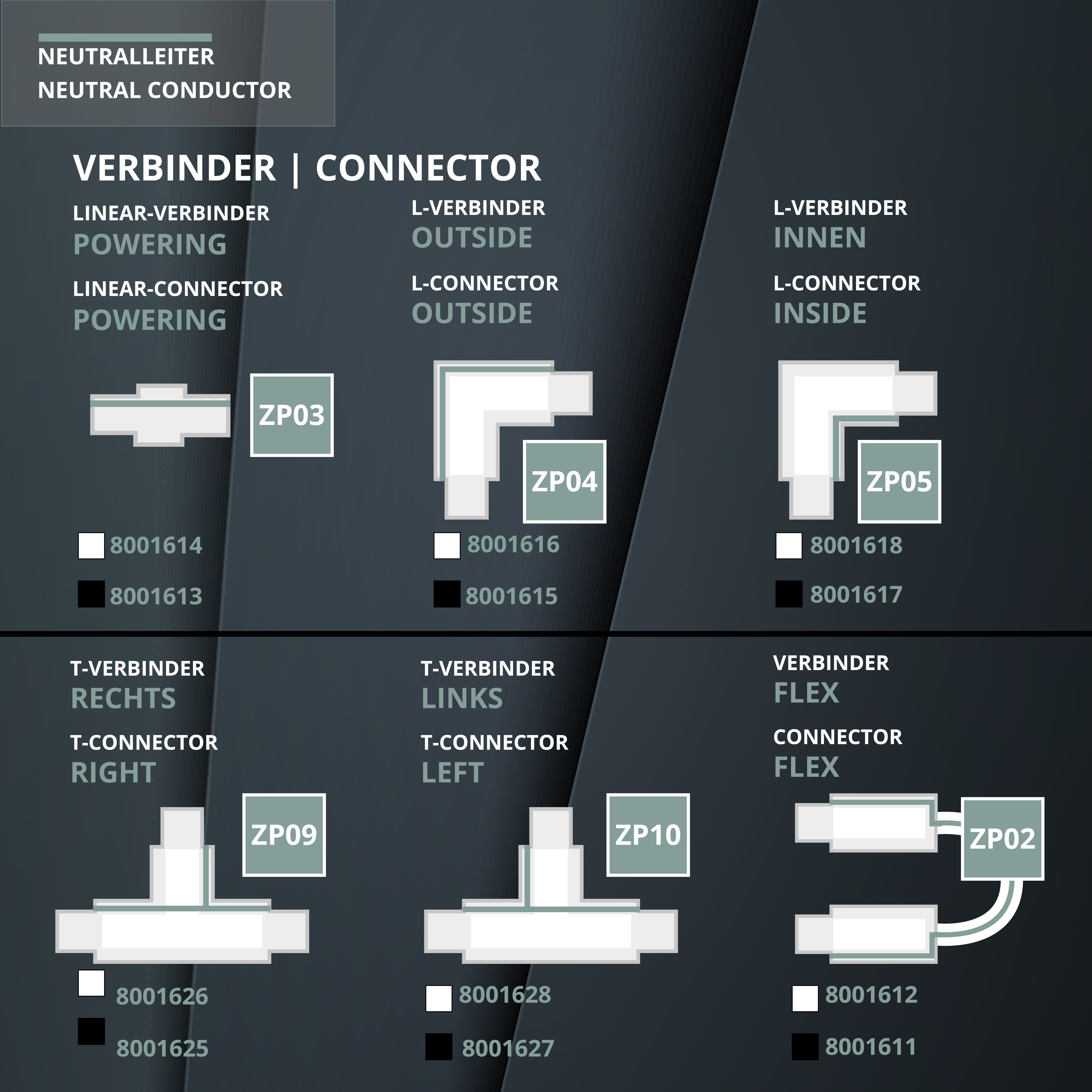 Weiterführende Links zu "GALAXY GP20 3-Phasen ZP02B Aufbauschiene Flex-Verbinder, schwarz L: 245mm"