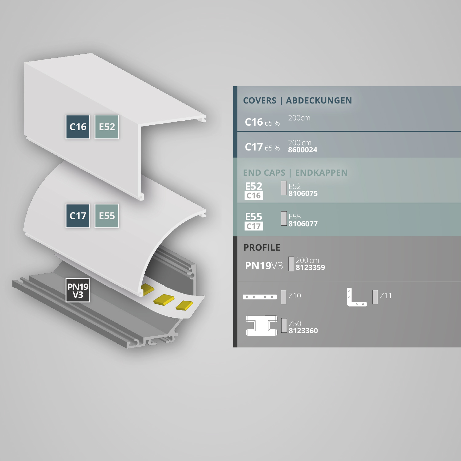 Weiterführende Links zu "GALAXY PN19V3 LED ECK-Profil 200 cm, LED Stripes max. 20 mm"
