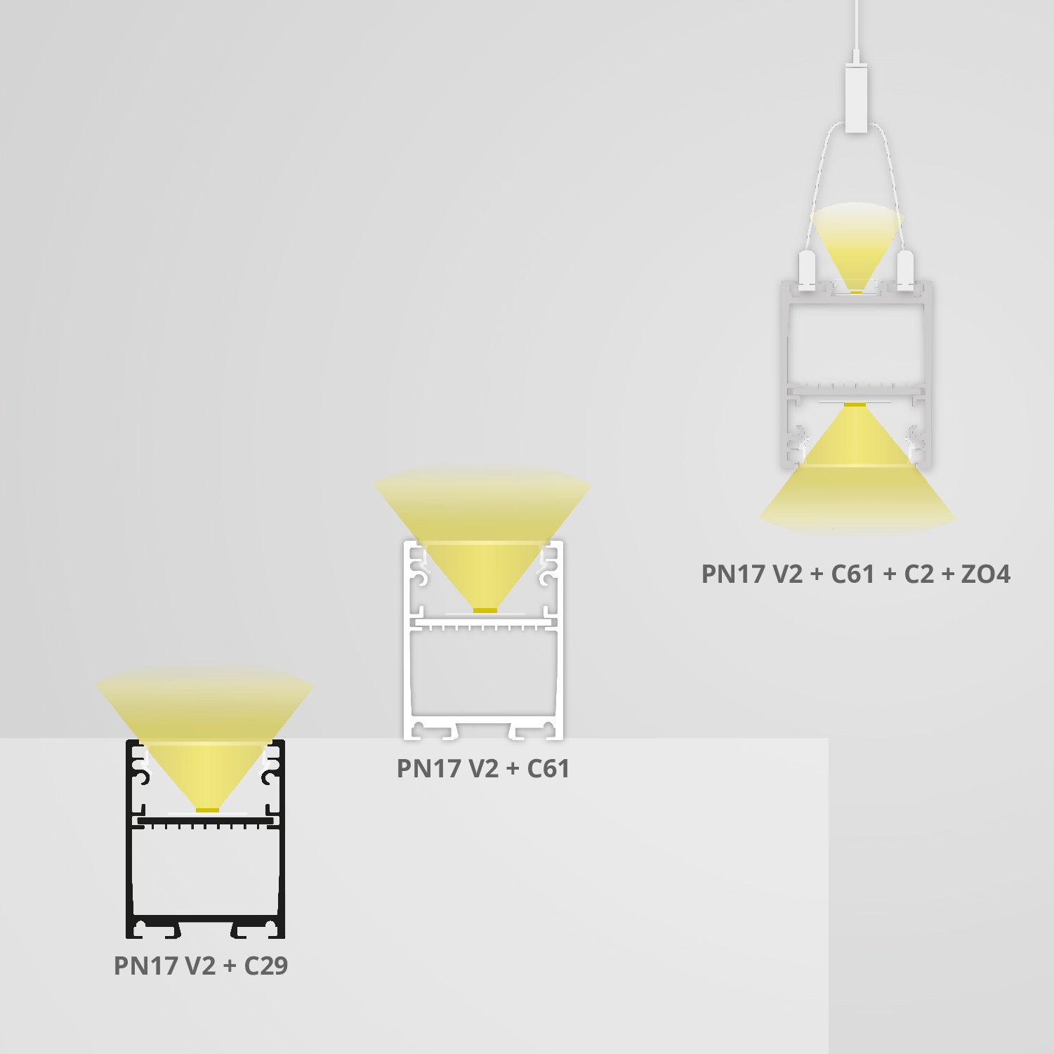 Weiterführende Links zu "GALAXY PN17V2 LED LEUCHTEN-Profil 300 cm, symmetrisch, schwarz RAL 9005 LED Stripes max. 30 mm"