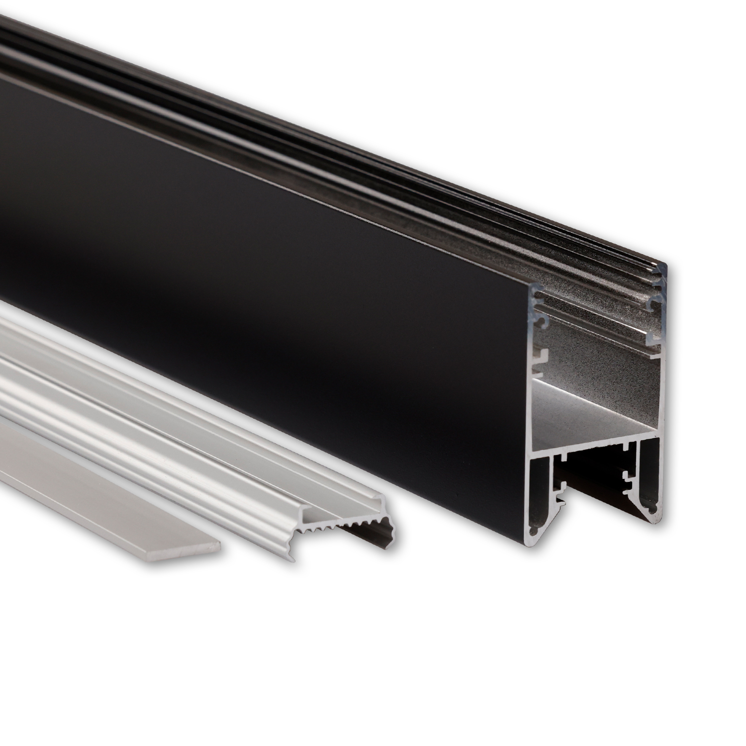 Zolltarifnummer: 76042990 Herkunftsland: CN|Farbeschwarz | | Länge [mm]3000,0 | | Höhe [mm]64,5 | | Breite [mm]40,0 | | Max. Breite Stripe15 | | Innenhöhe in mm7 | | erforderliche Kühlmasse g/m136 | Das PN27 LED Leuchten-Profil mit Up- & Down-Beleuchtung in Silber eignet sich für LED-Flexbänder mit 30 mm oder 16 mm Breite. Eine abgeschrägte Seite reduziert die Blendung, während das Profil flexibel für Aufbaumontage sowie für abgehängte Lösung genutzt werden kann. Das klickbare Inlay erleichtert zudem die Installation.}