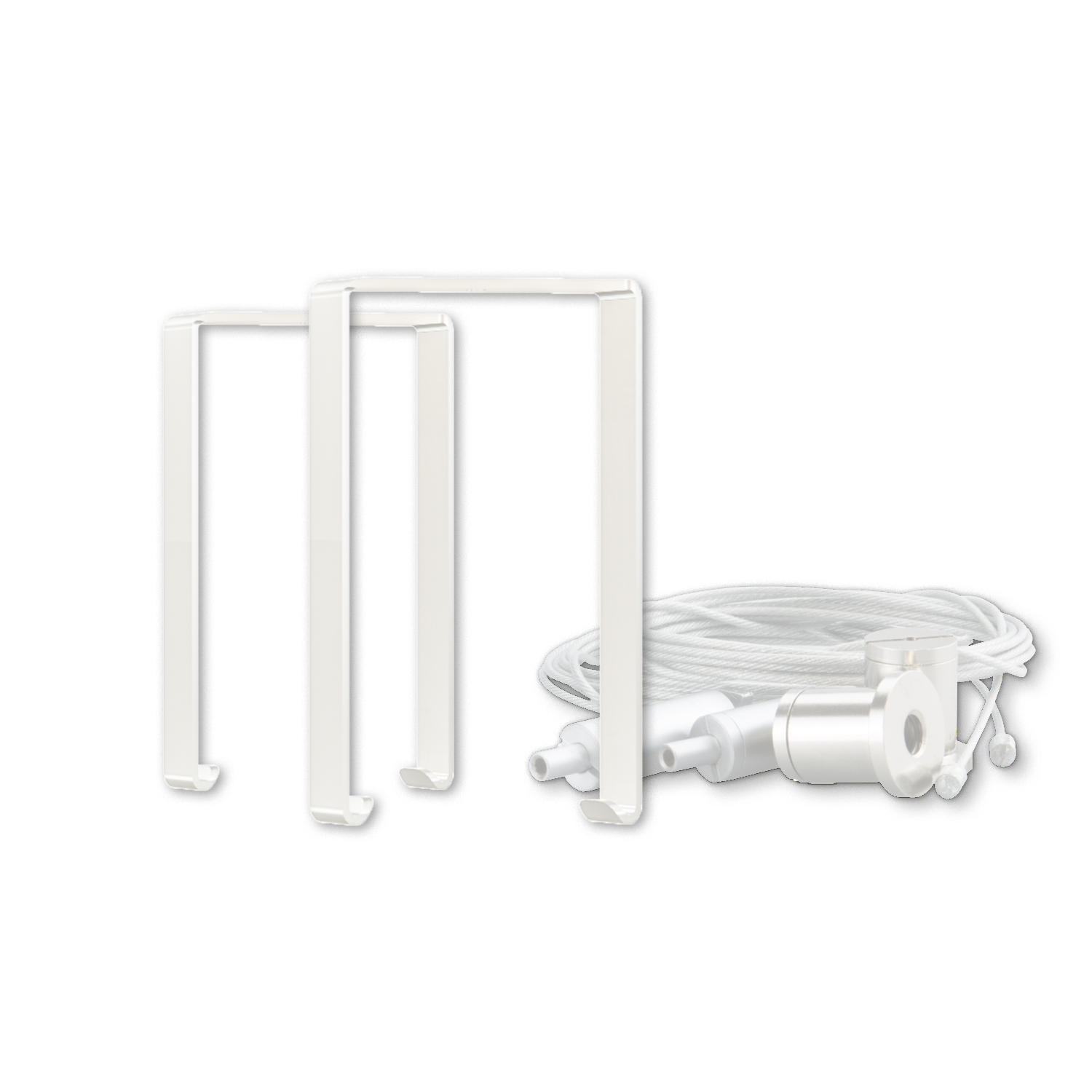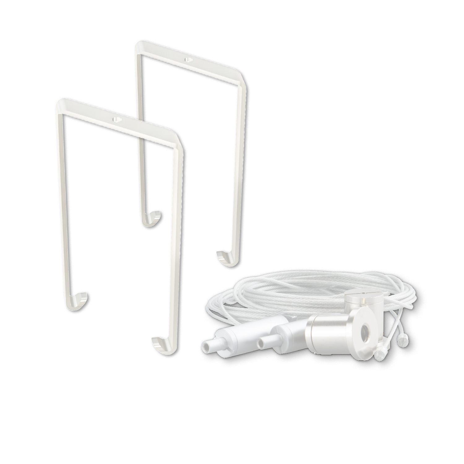 Zolltarifnummer: 76169990 Herkunftsland: CN|Farbeweiß | | Länge [mm]45,0 | | Höhe [mm]107,0 | | Breite [mm]9,0 | Der Montagebügel Z65 in Weiß wird inklusive Seilabhängung geliefert und eignet sich ideal für die sichere, abgehängte Montage von PN27 Profilen. Durch die stabile Konstruktion und die flexible Seilführung lässt sich die Höhe individuell anpassen, sodass eine präzise und zuverlässige Installation gewährleistet ist. Im Set enthalten sind 2 Stück.}