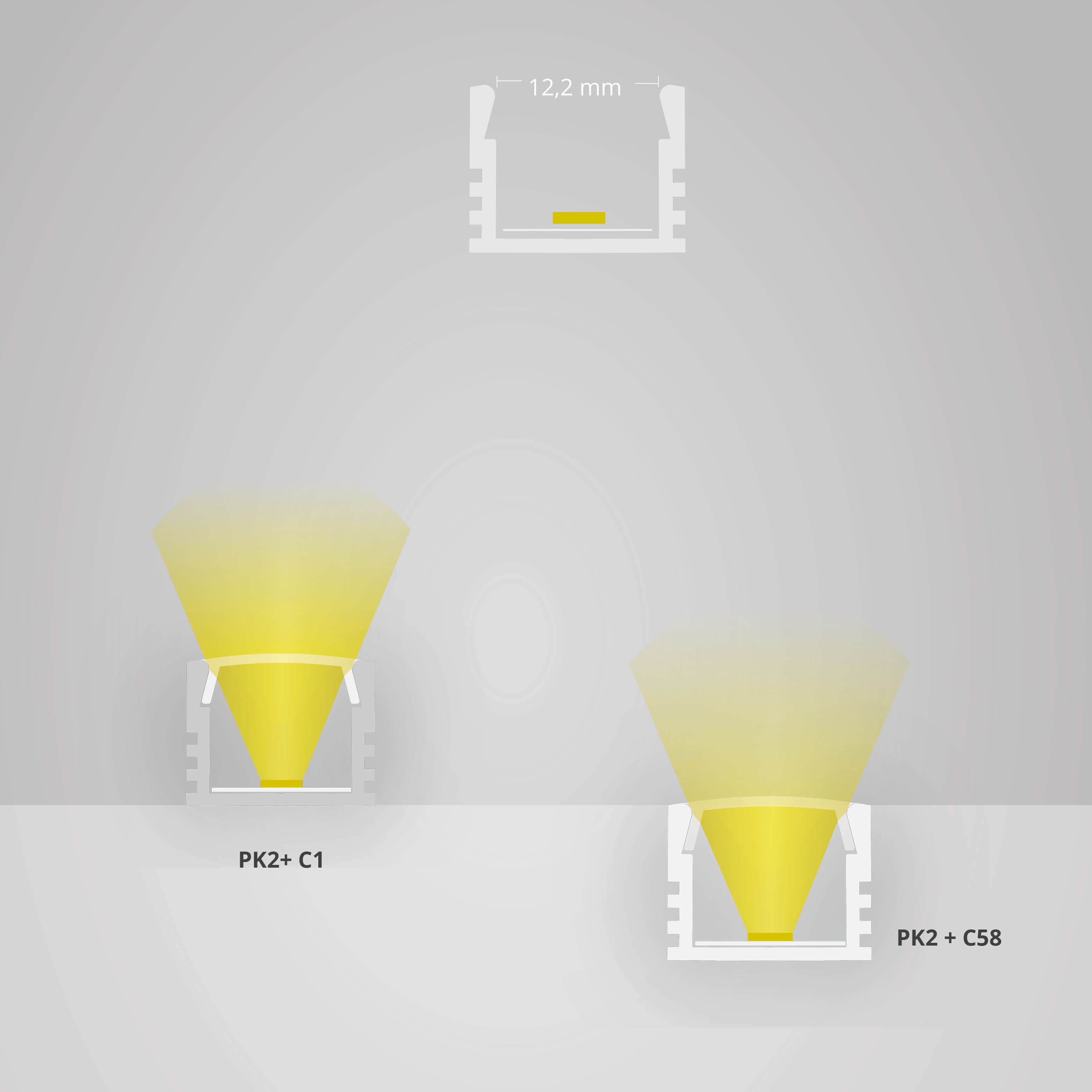 Zolltarifnummer: 76042990 Herkunftsland: CN|zulässige Umgebungstemp.-20°C - 45°C | | Farbeschwarz | | SchutzartIP20 | | Länge [mm]2000,0 | | Höhe [mm]12,0 | | Breite [mm]16,0 | | Einbautiefe in mm16 | | Max. Breite Stripe12 | | Innenhöhe in mm12 | | erforderliche Kühlmasse g/m133 | Das PK2 LED Aufbauprofil hat ein besonders schmales Design, ist für LED Flexbänder mit einer maximalen Breite von 12 mm konzipiert. Dieses Alu-Profil kann auch anwendungsspezifisch zum Einbau verwendet werden. Dieses LED Profil hat aufgrund seiner im Vergleich zum PK1 LED Aufbauprofil größeren Innenhöhe auch einen größeren Kühlkörper und kann somit mit stärkeren LED Flexbändern bestückt werden, ohne dabei auf homogene LED Lichtlinien verzichten zu müssen (keine Lichtpunkte, sondern durchgängige Lichtlinie). Für optimale Haftung der LED-Stripes wird eine gründliche Reinigung der Profil-Innenseiten empfohlen.}
