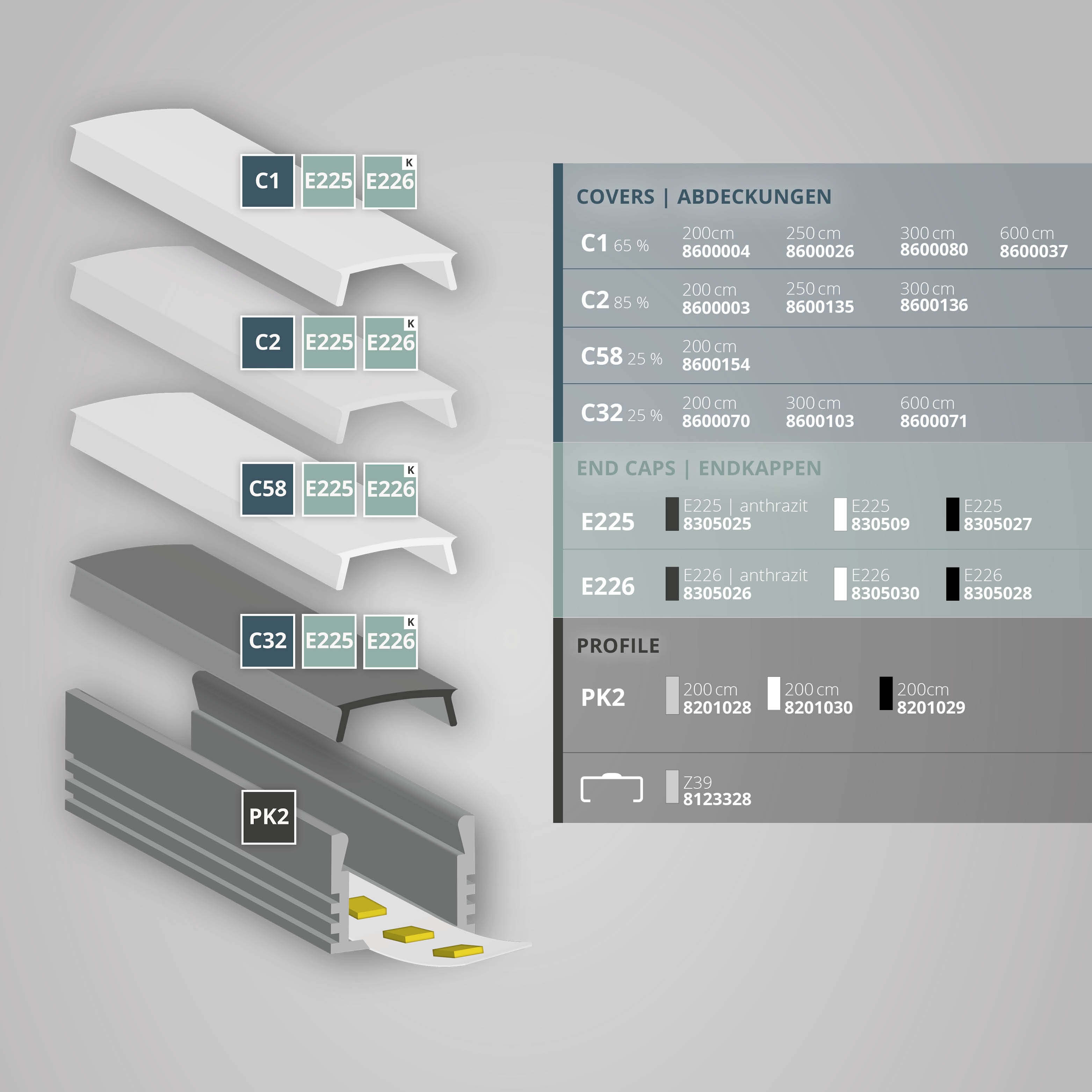 Weiterführende Links zu "GALAXY PK2 LED AUFBAU-Profil 200cm, hoch, schwarz RAL9005, LED Stripes max. 12mm"
