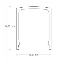 Zolltarifnummer: 39169050 Herkunftsland: CN| Polycarbonat | Opal || 65% Lichtdurchlässigkeit || L 2000mm | B 16,80mm| H 20,87mm |Bruchsichere und schwer brennbare LED Profilabdeckungen aus Polycarbonat in Opal (Lichtdurchlässigkeit 65 %) für homogene LED Lichtverhältnisse mit hoher Verwertung der Lichtleistung. Klassifizierung Brennbarkeit UL94 V-2: Verlöschen einer vertikal eingespannten Probe innerhalb von 30 Sekunden}