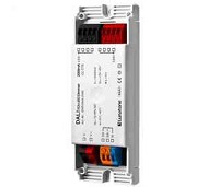 DALI LED-Treiber für Konstantsrom-LED-Module (CC) mit einem Kanal. Ausgang steuerbar über DALI oder SwitchDim2. Eingangsspannung von 12V bis 48V DC, Varianten mit Ausgangsstrom von 350mA bis 2500mA verfügbar, PWM Ausgang.