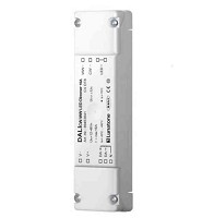 DALI LED-Treiber (CV) mit 2 Ausgangskanälen zur Steuerung von Tunable White fähigen Leuchten über eine DALI Adresse (DT8). Alternativ zur DT8 Steuerung unterstützt das Gerät die Betriebsarten: Balance&Dim, Dim2Warm und SwitchDim2 (Steuermöglichkeit über 2 Tastereingänge ohne DALI). Eingangsspannung von 12V bis 28V DC oder 12V bis 48V DC, je nach Ausführung für Anschlussströme bis zu 16A, 2 PWM- Ausgänge (16 Bit).