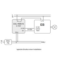 Dieses Interface wandelt DALI Signale in ein 1-10V Steuersignal um und ermöglicht das Einbinden von Betriebsgeräten mit 1-10V Steuereingang in ein DALI System.