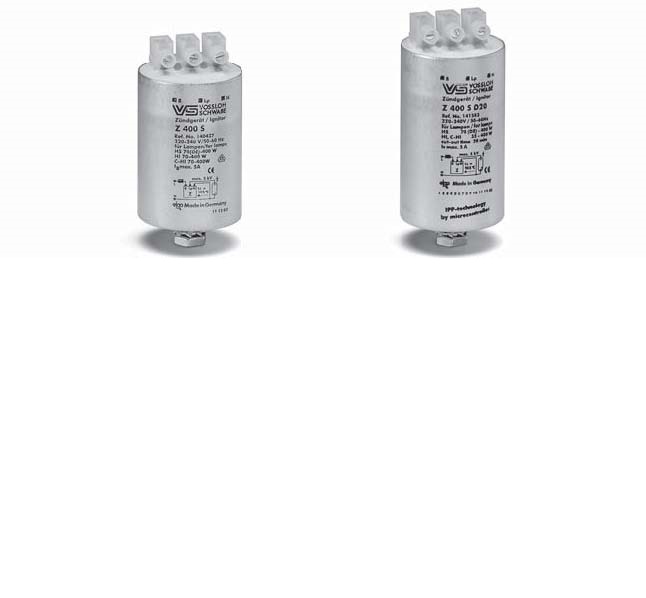 Überlagerungszündgerät HS + HIAluminiumgehäuse mit Schraubklemmen,Spannung: 220 - 240 V, 50-60 Hz,mit Abschaltautomatik, geeignet für: HS: 70W, 100W, 150W, 250W, 400WHI: 35W, 70W, 100W, 150W, 250W, 400WAbmessung: DM 45mm x 100mm Länge